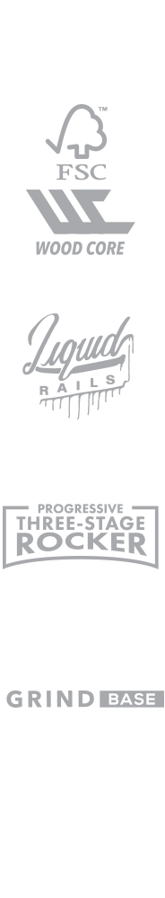 | Size | Length | Width | Rocker | Stance Range | Rider Weight | Rocker Type | Core |